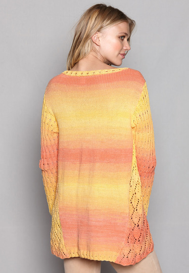 Noch stehen die Uhren nicht auf Sommerzeit, doch mit diesem farbenfrohen Baumwollpulli kommt Frühlingstimmung auf. Schönes Detail: die keilartigen Seitenteile im Blattmuster.