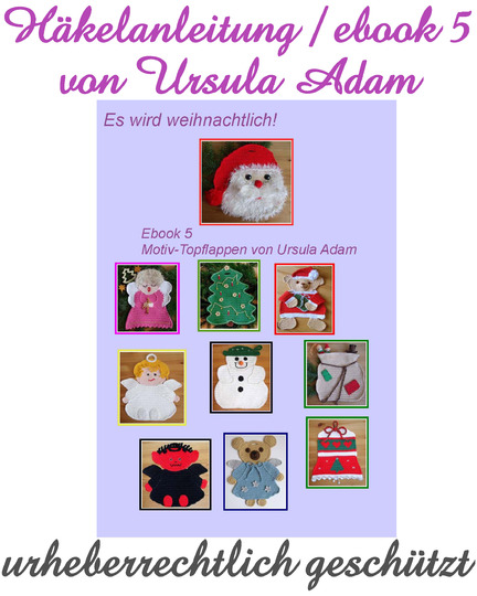 Mit dem Kauf bekommen Sie eine ausführliche Schritt-für-Schritt Anleitung für jeden abgebildeten Motivtopflappen mit Bildern und Zählmuster zugeschickt. Das Motiv ist darin groß abgebildet und macht richtig Lust zum Nacharbeiten. Ich habe auch angegeben, welches Material, welche Nadelstärke und sonstiges Zubehör Sie zum Nacharbeiten benötigen.