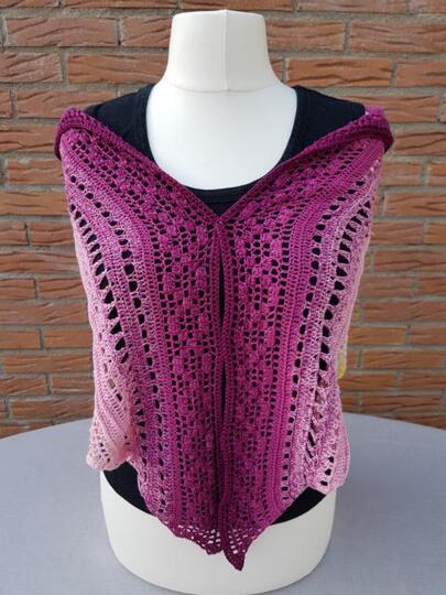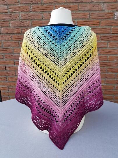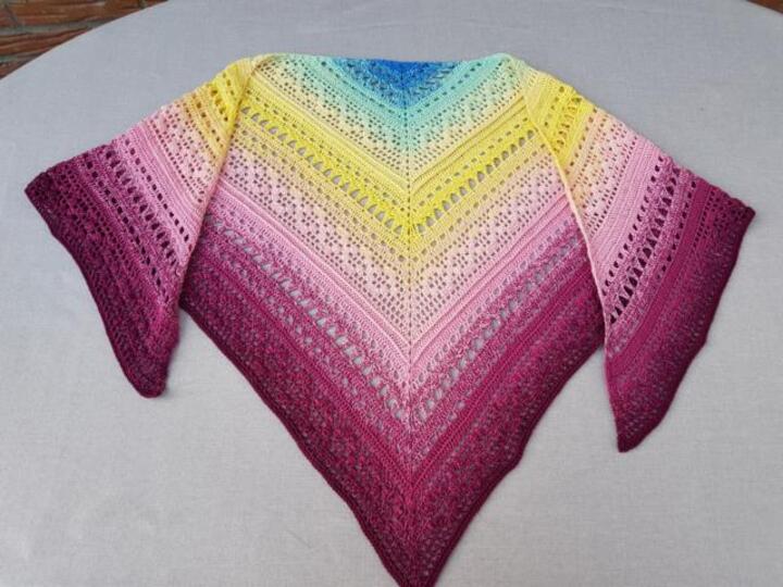 Das Tuch Infinito ist ein Dreieckstuch das besonders gut mit Farbverlaufsgarn zur Geltung kommt.