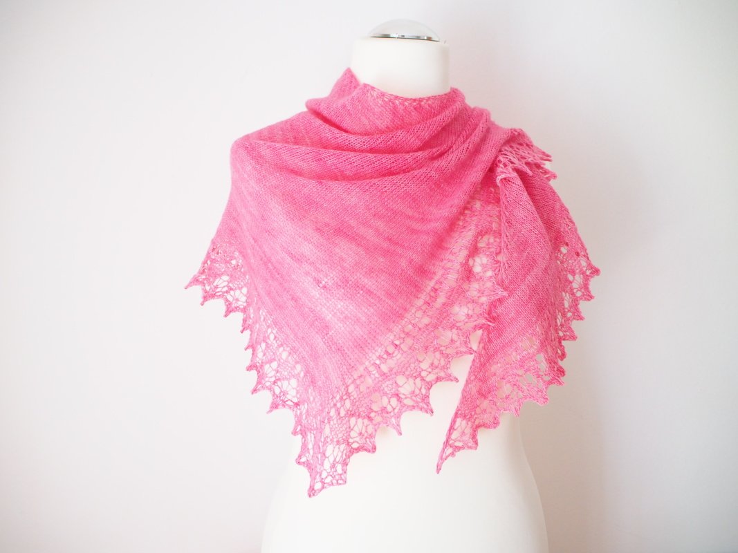 Viviane ist ein asymmetrisches Tuch das in einem Stück gestrickt wird.