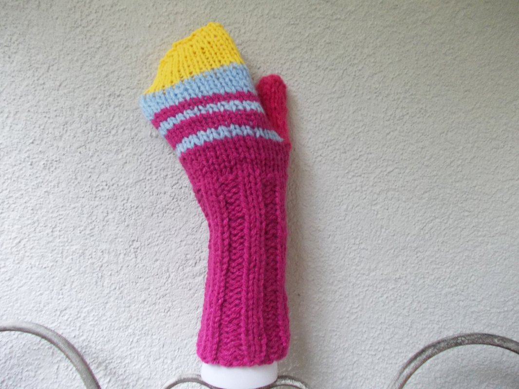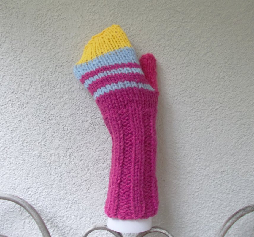 Verblüffend einfach sind die Stulpen und Handschuhe zu stricken; hier kann jeder seine eigenen Muster und Farbkombinationen wählen, da die Grundanleitung für Stulpen und erweitert für Handschuhe/Fäustlinge gilt.