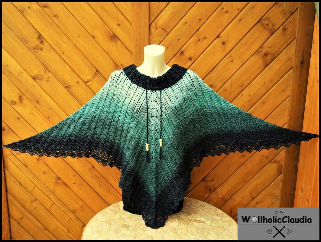 This Poncho named 'Midnight Dream' is just perfect to brave fall season weather. You can wear it in a variety of ways and simply pull the collar closer around you if the wind gets stronger.