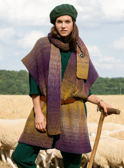 Wer liebt sie nicht bei Kälte? Schal und Poncho, in die wir uns einhüllen und wohlfühlen. Jetzt zeigen sie, dass es noch stylischer geht: beide Teile werden im zweifarbigen Patent mit zwei Farbverlaufgarnen gestrickt.