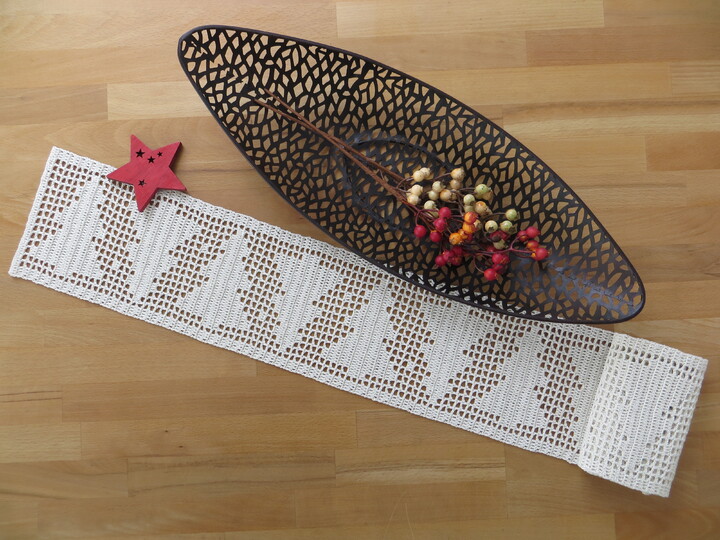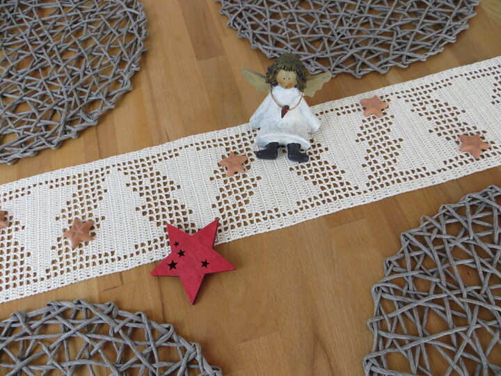 Mit dieser Anleitung kannst du dir schnell und einfach dieses weihnachtliche Tischband häkeln ... für einen stimmungsvoll und festlich gedeckten Tisch während der Advents- und Weihnachtszeit.