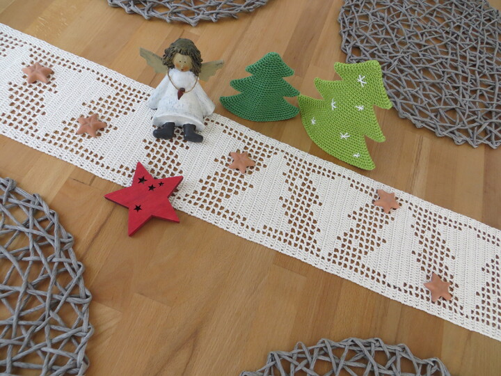 Häkelanleitung für Tischband 'Tannenbäume'