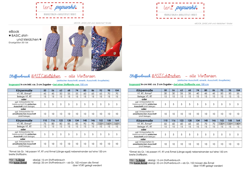 Alle “leni pepunkt.” Kids Schnitte beinhalten die Einzelgrößen 50-164.