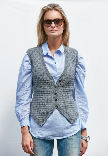 Austermann "Merino 160 EXP" (100% Schurwolle, LL ca 160 m/50 g): ca 250 (300-300-350) g Grau Fb 229; addi-Stricknd 4 mm; addi-Rundstricknd 3,5 mm, 80 cm lang; 5 Knöpfe, 17 mm Ø von Jim Knopf, Art 12170, Fb 01 Schwarz.