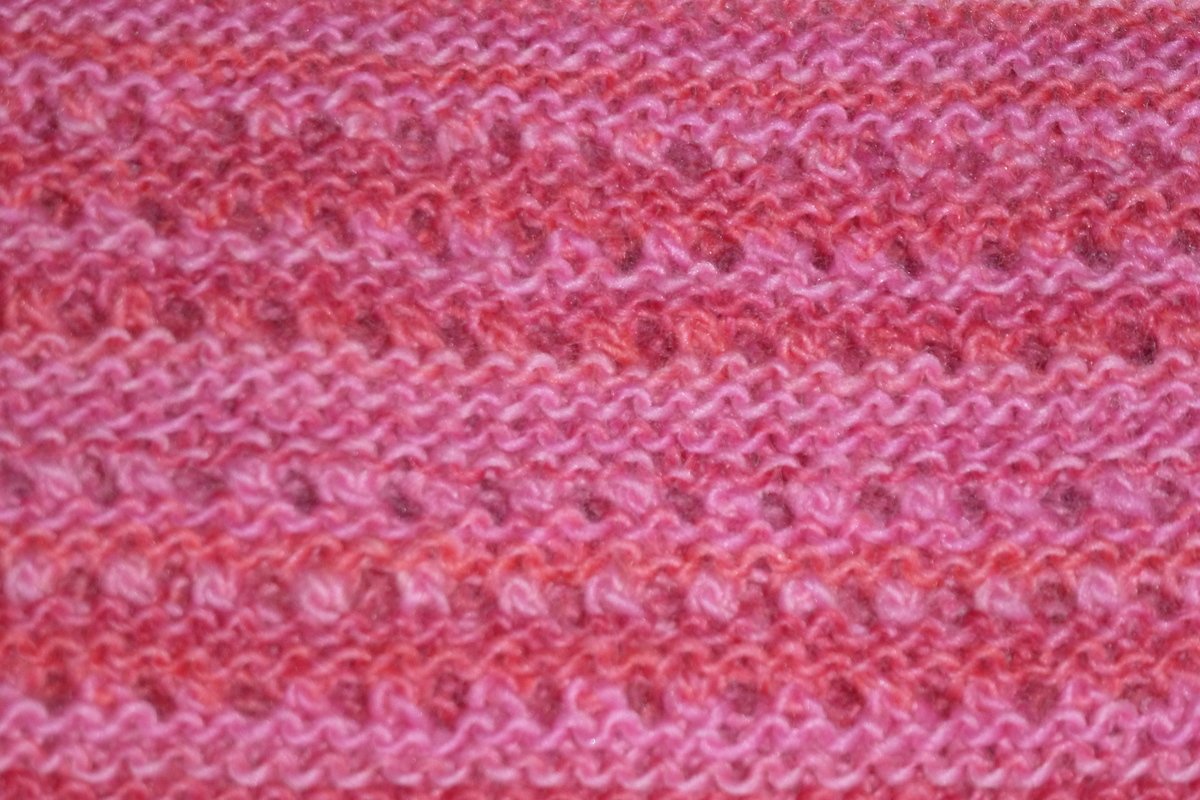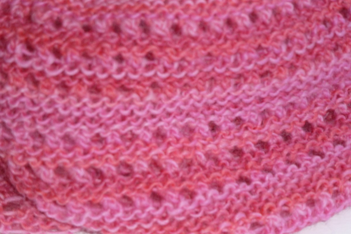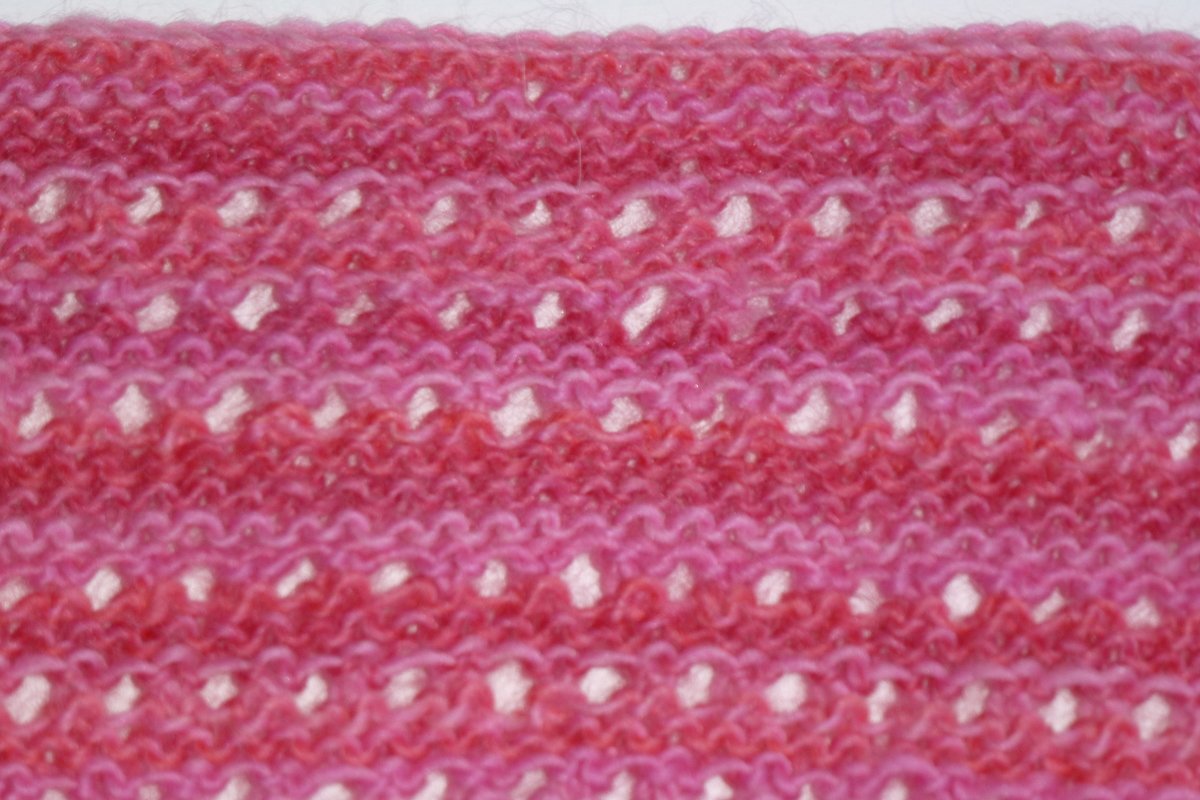 Es besteht aus rechten und linken Maschen, sowie Umschlägen.