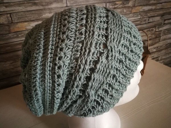Die Mütze hat keine Nähte, du musst keine lästigen Maschen zählen und ist relativ schnell und leicht zu häkeln, daher auch für Einsteiger möglich nachzuhäkeln