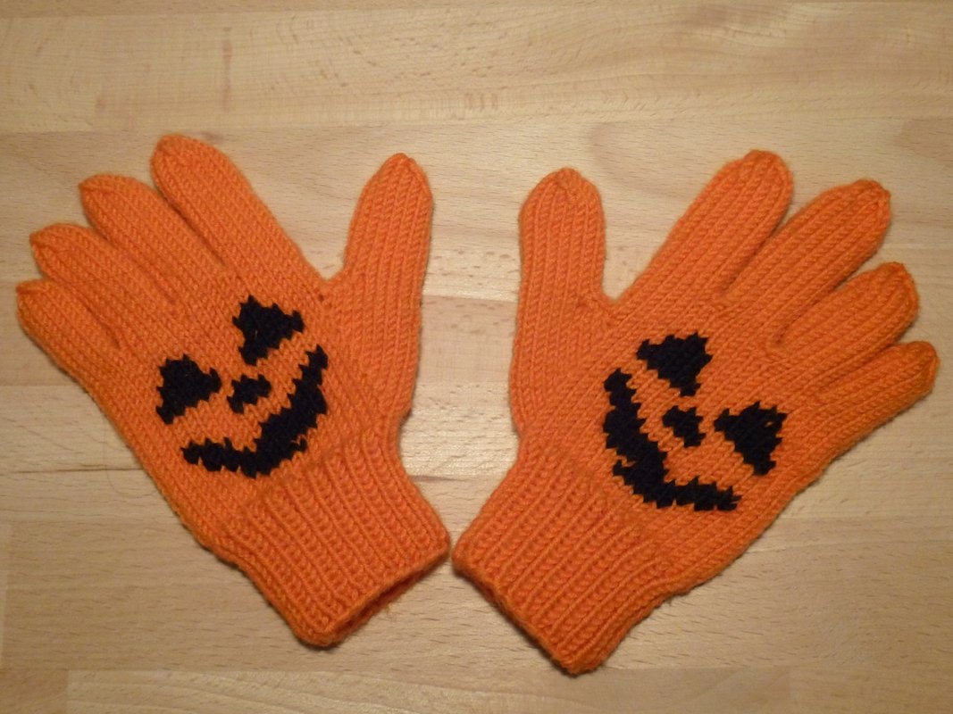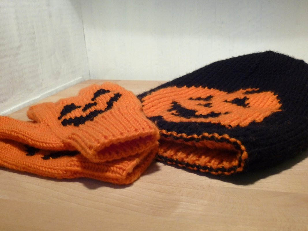 Strickanleitung für Wendemütze und Fingerhandschuhe „Halloween-Kürbis“ für Kinder – Kopfumfang ca. 50cm (3 - 5 Jahre)