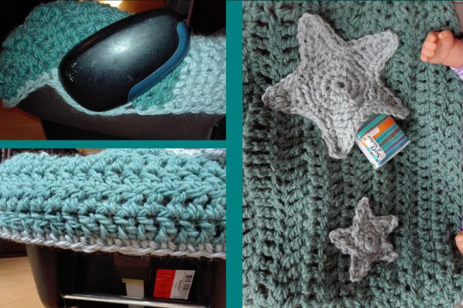 Der große Stern sieht nicht nur hübsch aus, er dient zusätzlich als Tasche für Schnuller, Taschentücher oder sonstigen Kram.