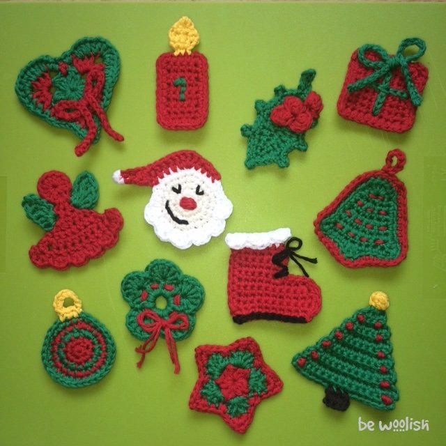Weihnachtskarten gestalten, Adventskalender verzieren, Anhänger für Geschenke oder den Weihnachtsbaum. All dies und noch Vieles mehr ist mit diesen 12 kleinen Applikationen möglich. Sie sind vielseitig verwendbar und können farblich natürlich individuell angepasst werden. Ideal um den Korb mit den Wollresten zu leeren.