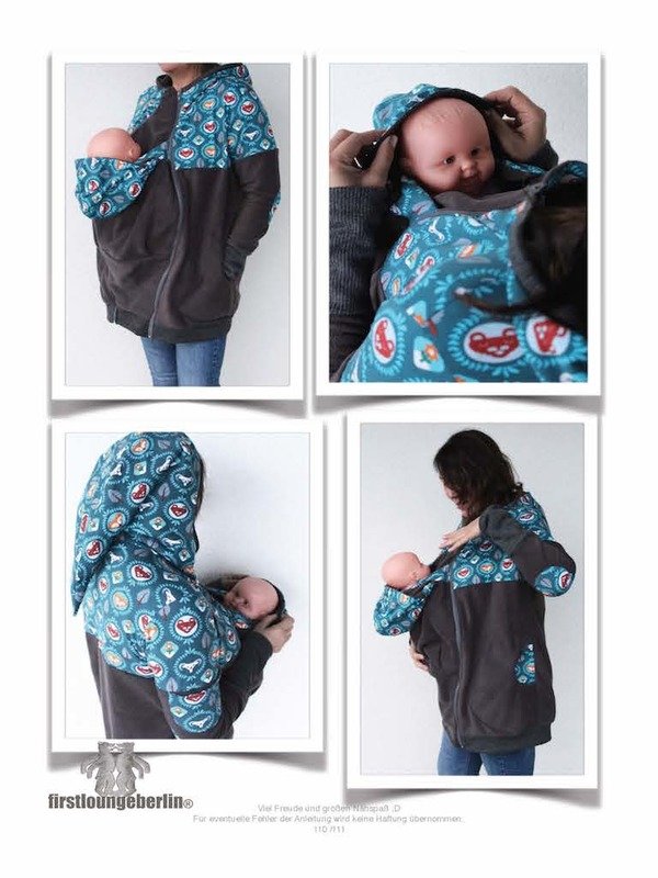 Exklusiv für die lange Jacke gibt es eine Nähanleitung für Bauchteil einfach oder mit Stoffkombi und ein Baby-Cover für Mama & Baby, die ausführlich beschrieben und bebildert sind. ♥♥♥