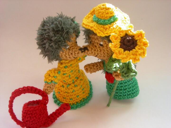 *Stolz bringt Igel Bruno seiner Liebsten Anny eine herrliche Sonnenblume, die er selbst gepflanzt hat.Da freut sich die kleine Igeldame und gibt ihrem Bruno einen dicken Kuss.
