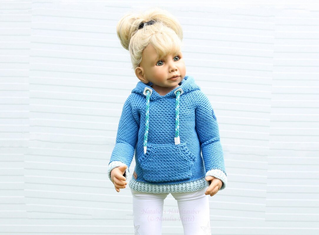 Diese PDF-Häkelanleitung besteht aus bebilderter Anleitung zum Häkeln von einer Hoodie (einem Kapuzenpullover) für Kinder, für Gr. 98 -152, im Stricklook. Der Pullover ist ziemlich leicht zu häkeln, sodass die Anleitung auch für Anfänger mit Vorkenntnissen geeignet ist, jedoch nicht als erstes Häkelprojekt tauglich.