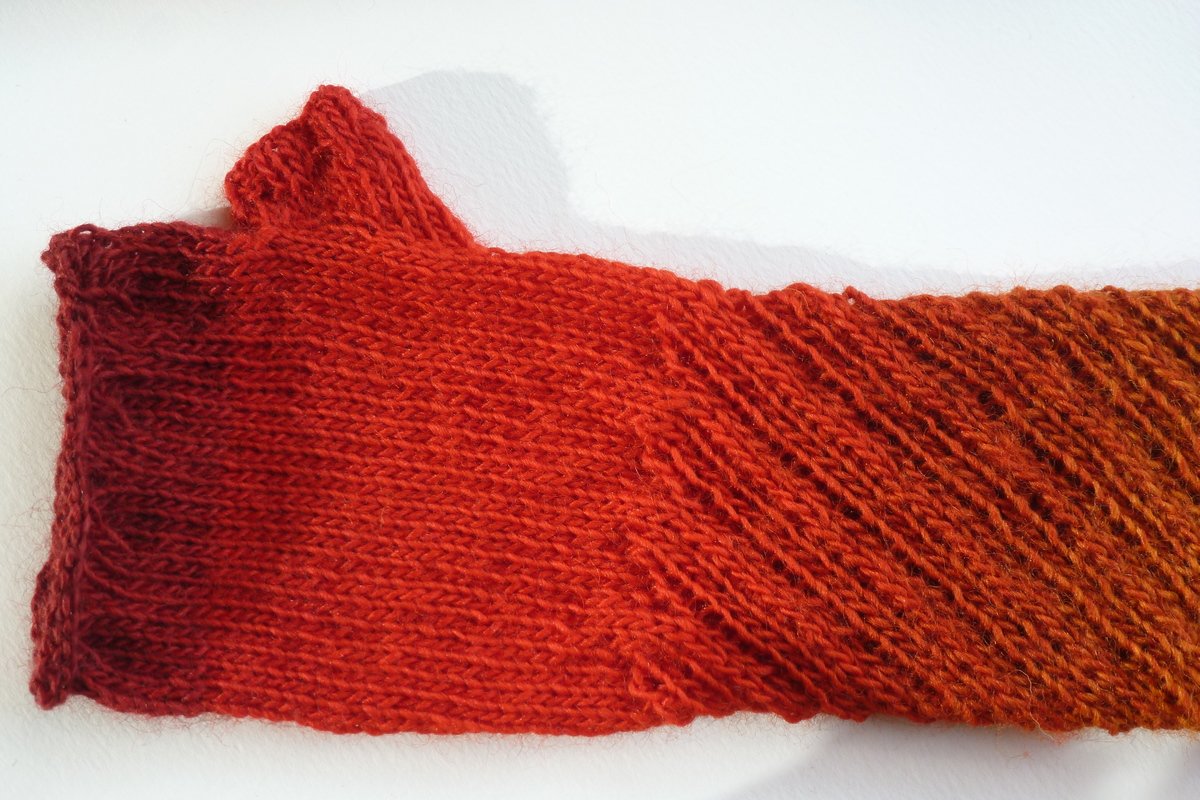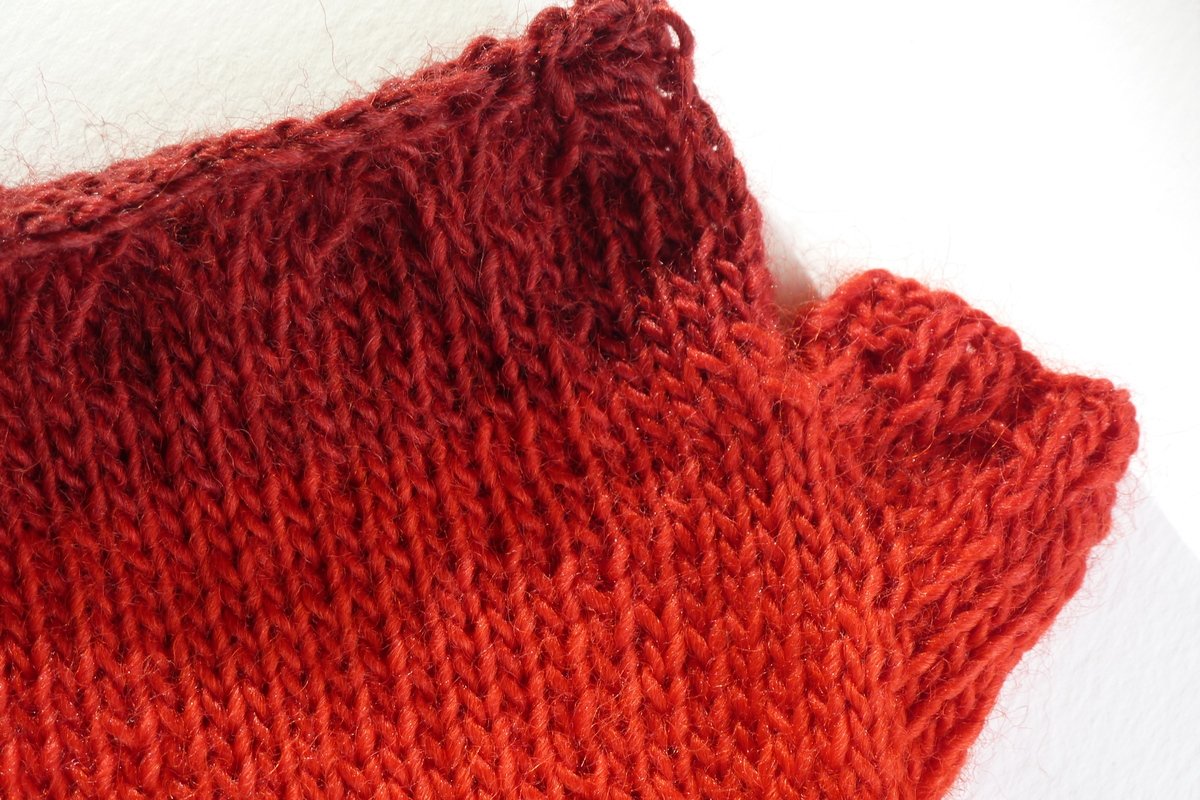 Als Material braucht es 50gr Wolle mit Farbverlauf Lauflänge 420m/100gr, und ein Nadelspiel Nr. 3
