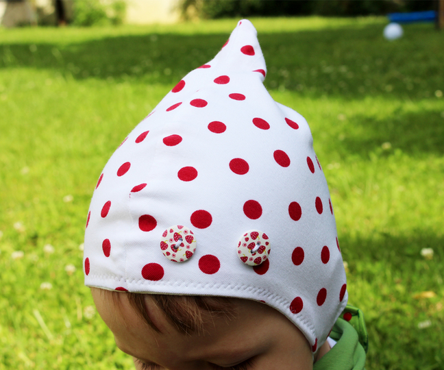 Die süße Mütze "Zwergchen" passt sich durch ihre bequeme Form wunderbar dem Köpfchen an.