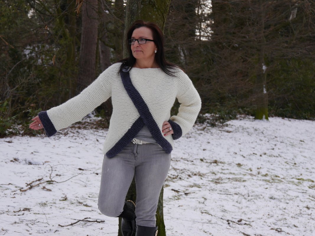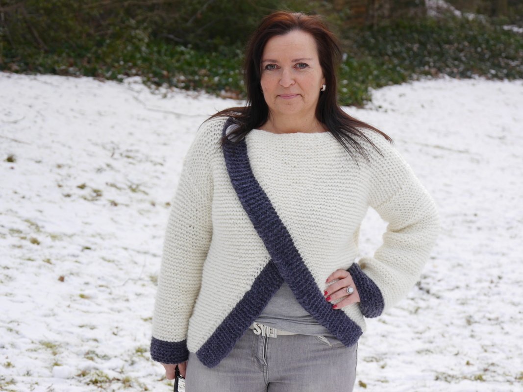 Ein Strickpulli mit einem raffinierten Schnitt.Er lässt sich vielfältig kombinieren und hält dank der qualitativ hochwertigen Wolle von Lanagrossa auch Minustemperaturen stand.