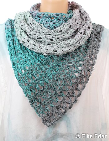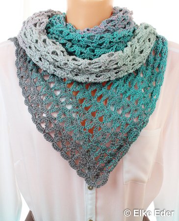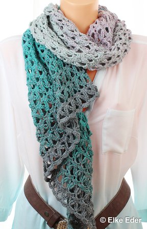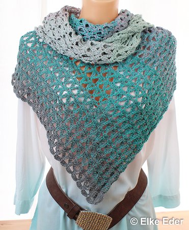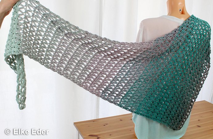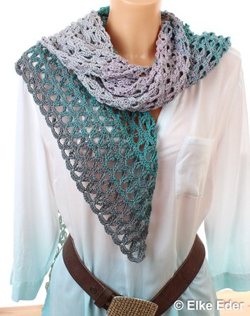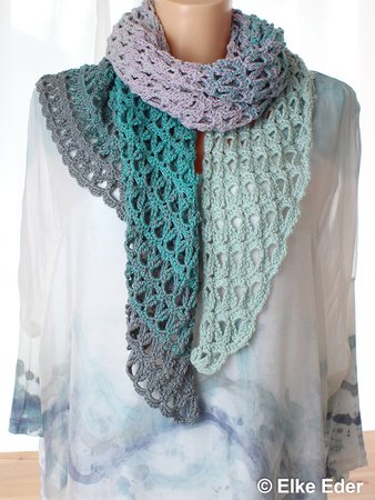 Dieses schöne asymmetrische Dreieckstuch fällt aufgrund des Lochmusters wunderbar locker und soft. Somit sehr angenehm und in vielen Varianten zu tragen.