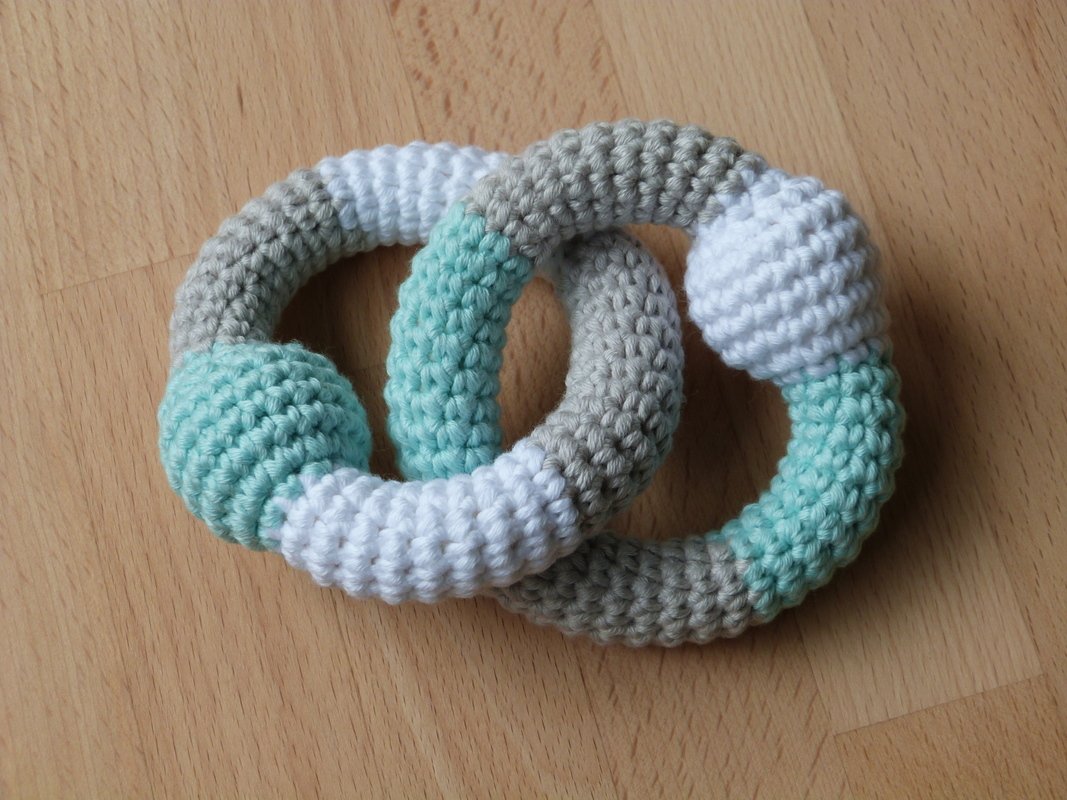 Häkelanleitung für einen Rassel-Greifling für deinen kleinen Schatz.