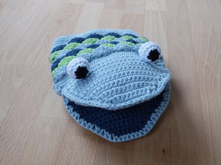 Folgende Techniken werden verwendet: Luftmaschen, Kettmaschen, feste Maschen, Stäbchen, Häkeln in Reihen und in Runden, Zunahme und Abnahme von Maschen. Die richtige Platzierung der "Schuppen" erfordert etwas Erfahrung!