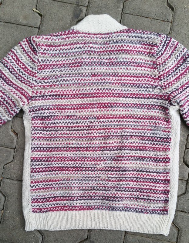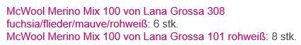 Verwendetes Material: McWool Merino Mix 100, 6x fuchsia mit Farbverlauf und 8x rohweiß.