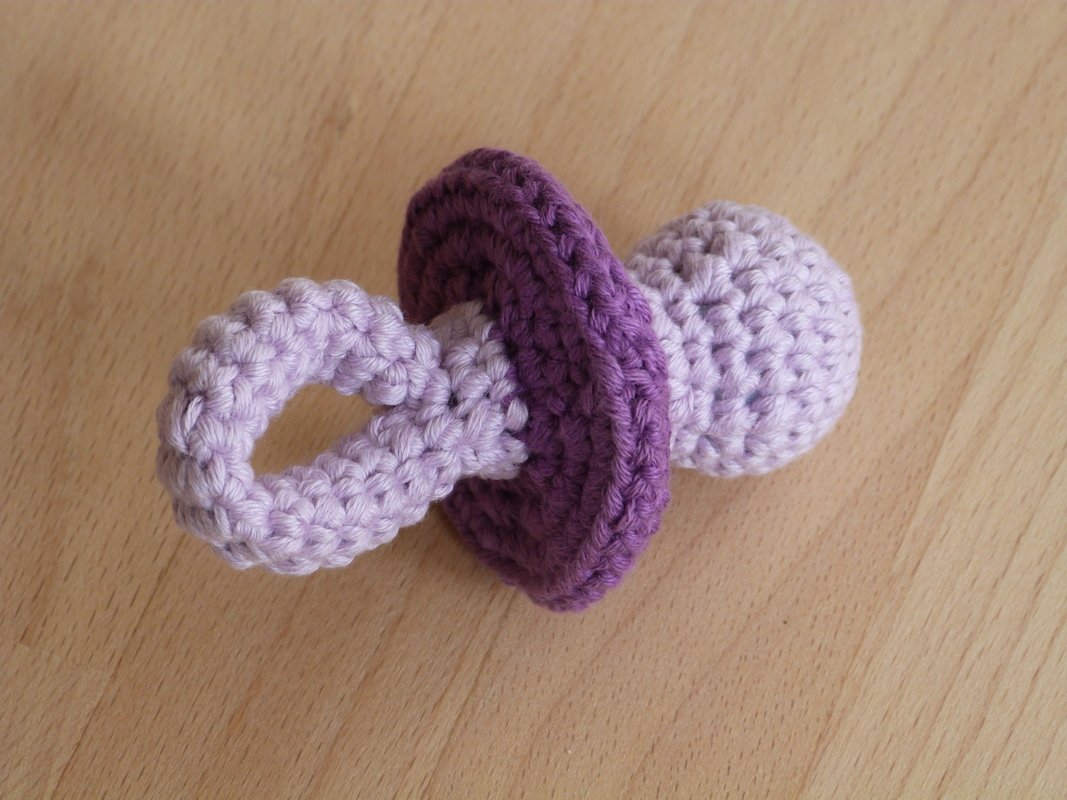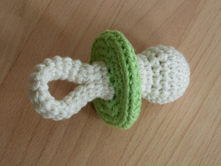 Häkelanleitung für eine Schnuller-Rassel für dein Baby.