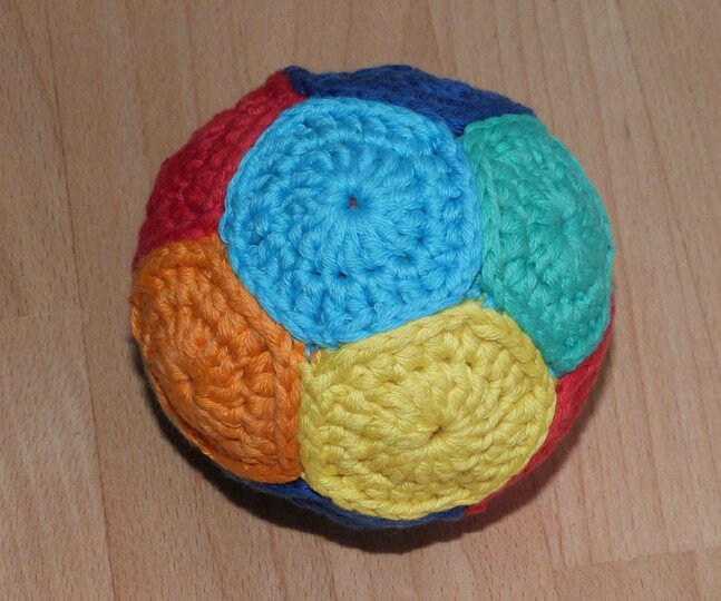Häkelanleitung für einen tollen Baby-Ball aus Granny Squares.