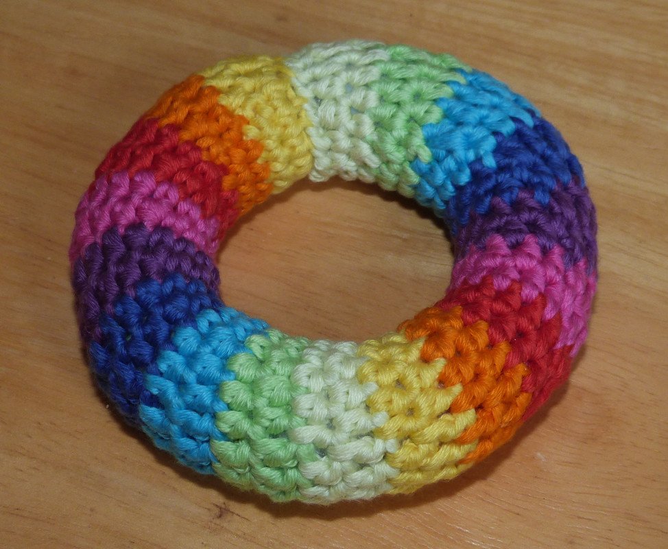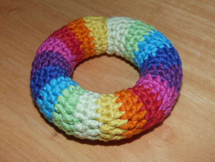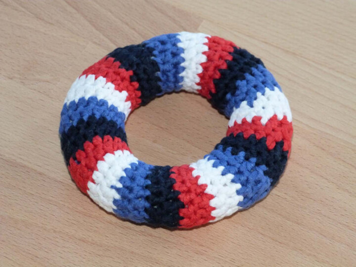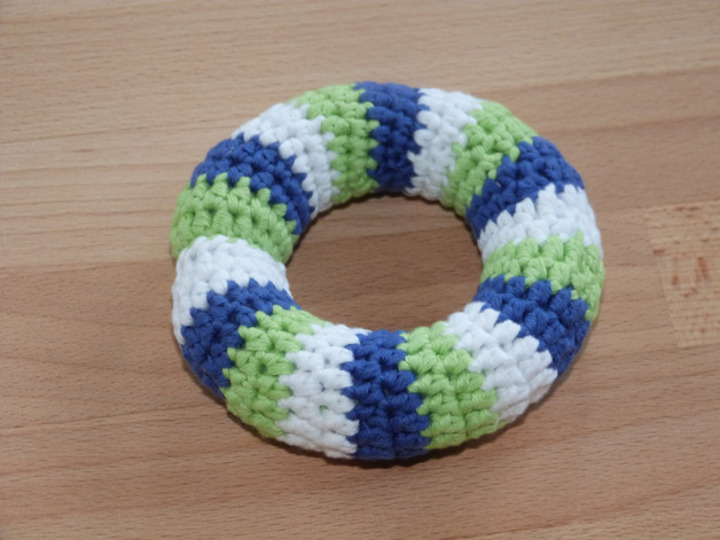 Häkelanleitung für einen Rassel-Greifring für dein Baby.