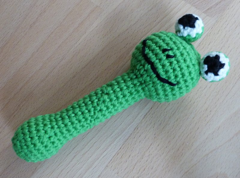 Häkelanleitung für eine Frosch-Rassel für dein Baby