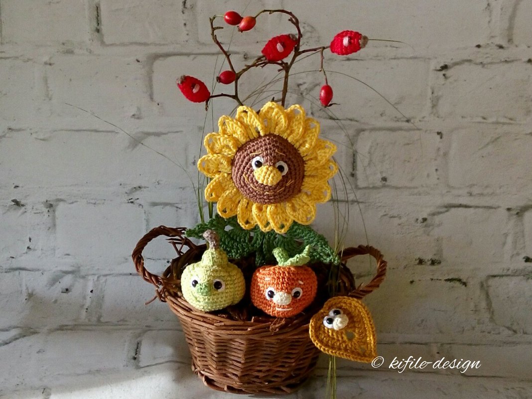 Material : Baumwolle 50 gr/125 m Reste in braun, orange, gelb , weiß und verschiedenen grün , Häkelnadel 2,5 und 2 , Eine detaillierte Material Liste befindet sich in der Anleitung