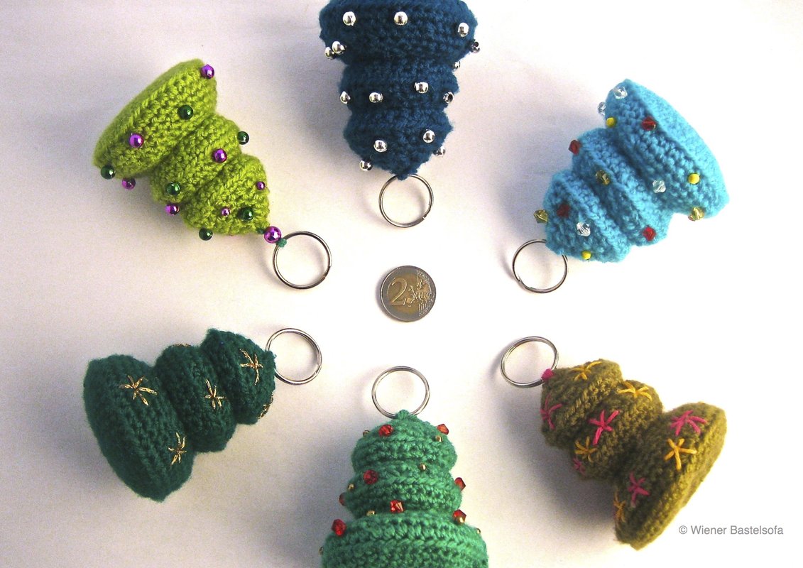Das Bäumchen ist ca. 6 cm hoch und ist mit Häkelnadel Nr. 3,5 mit Resten von Schachenmayr Bravo (50 g/ 133 m) gehäkelt und wird mit einem versteckten Druckknopf geschlossen.