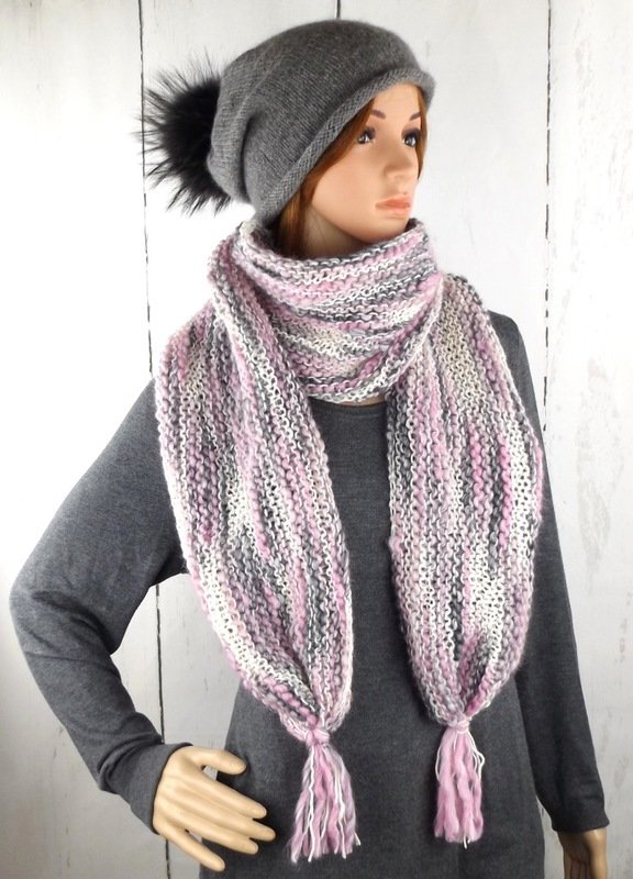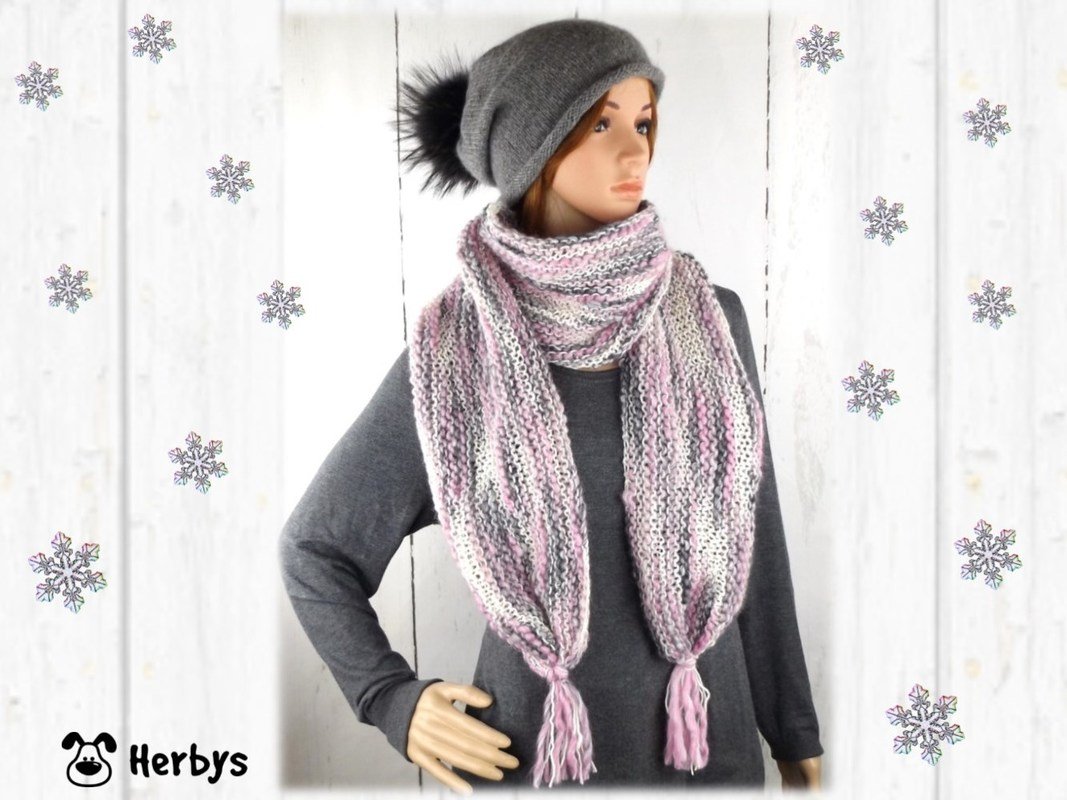 Schal: 170 cm lang x 25 cm breit (ohne Fransen)