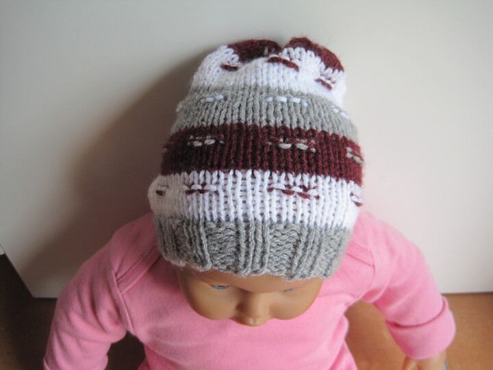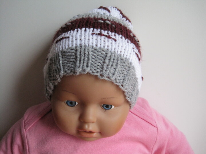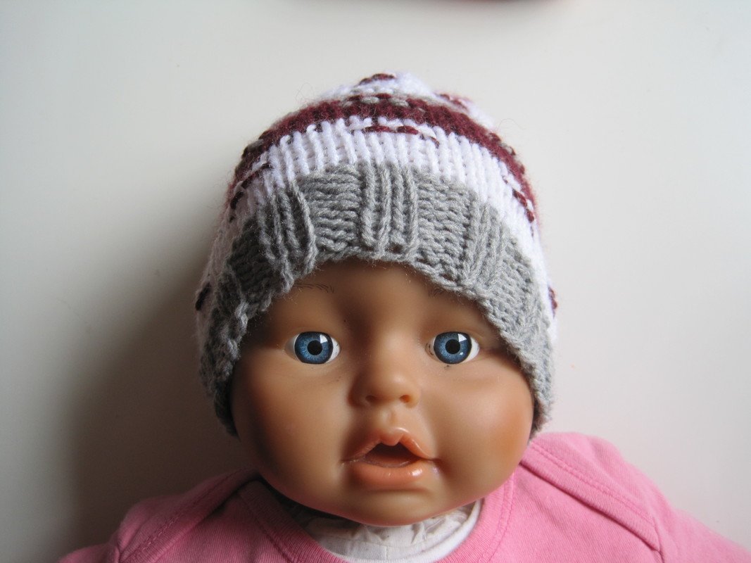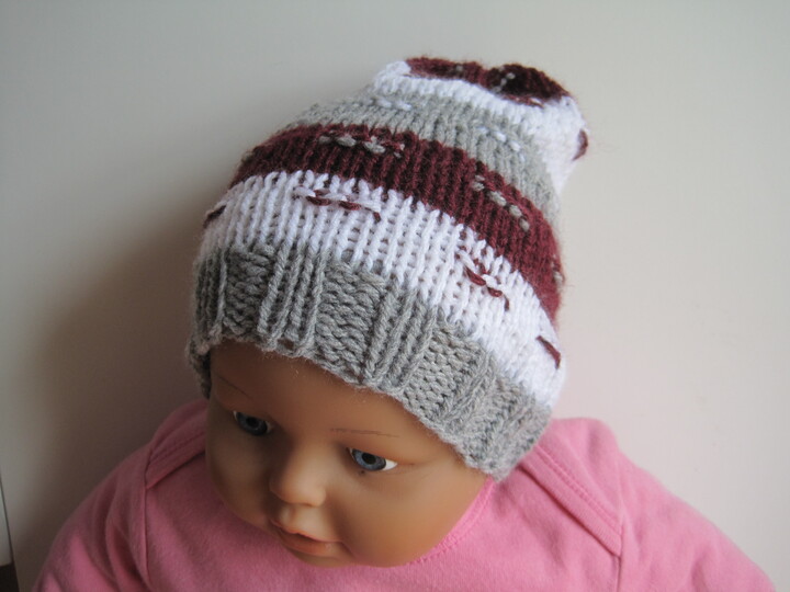 Diese süße Babymütze ist mit Absicht etwas größer gestrickt. Es kann bei Neugeborenen vorne am Bündchen einmal umgekrempelt werden und passt hervorragend. Wenn das Baby größer ist, kann sie ganz normal getragen werden. Somit wächst sie ein wenig mit und ist immer süß anzusehen. Natürlich auch in anderen Farben.