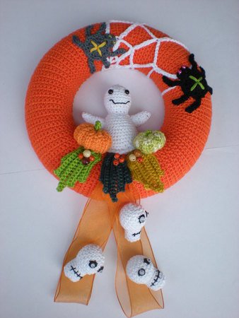 Halloween steht vor der Türe. Jetzt schon eine tolle Halloweendeko häkeln. Dieser Kranz ist super für die Türe, aber auch an der Wand, egal ob im Zimmer, auf dem Balkon oder der Terasse.