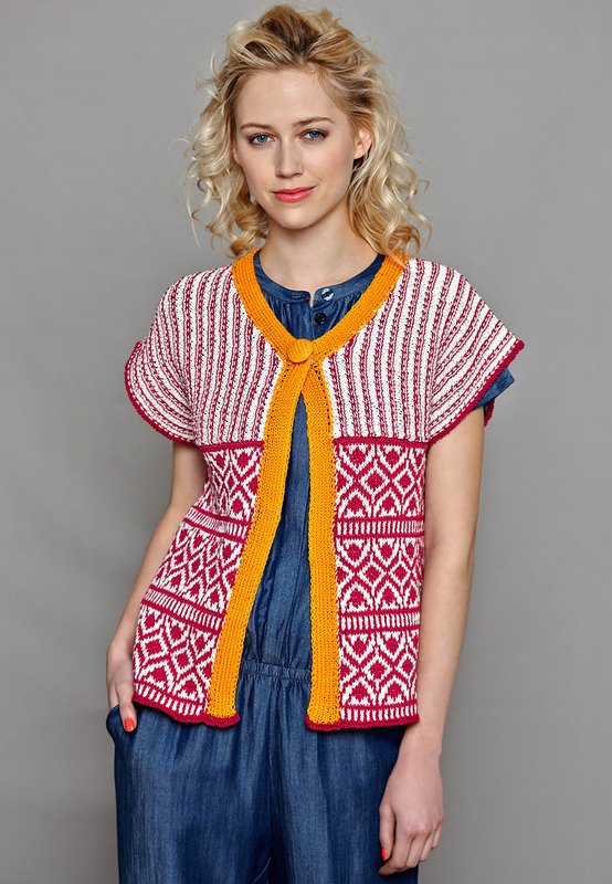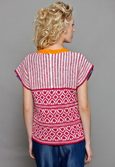 Superlässig wirken Uni-Looks, wenn eine so auffällige Weste dazu getragen wird. Diese überzeugt mit einem Mix aus Streifenmuster und Jacquards - nicht ganz einfach, aber die Mühe lohnt!