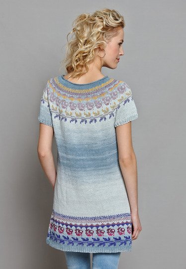 Romantische Rosenmuster und Blätterranken haben die geniale Eigenschaft unserer leicht ausgestellten Tunika mit eingestrickten Taschen das gewisse Etwas zu geben.