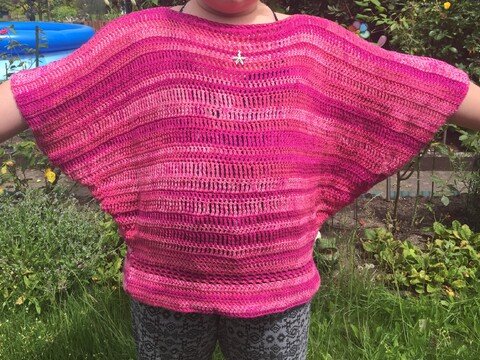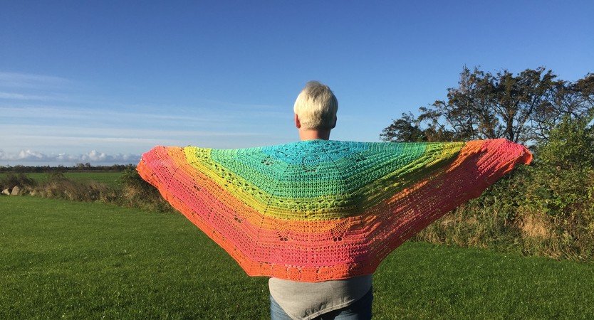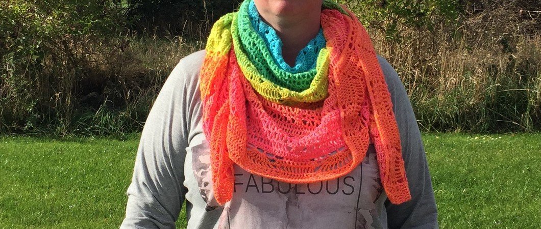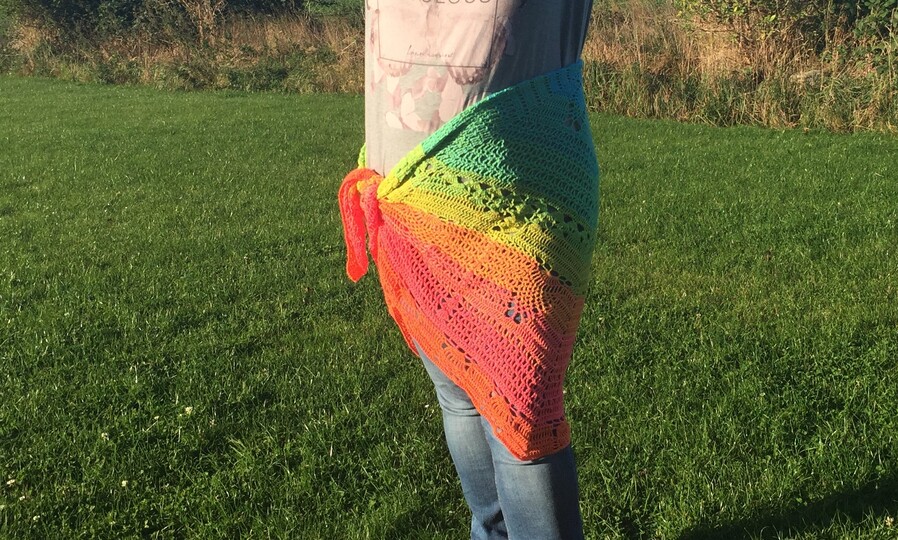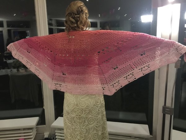 Das Tuch mit Geschichte... Hold my best friend warm ist für meine beste Freundin entstanden, die mir im Sommer mitgeteilt hat, dass sie für 3 Jahre nach Amerika geht. Ich wollte sich nicht allein gehen lassen und hab angefangen, für sie das große Tuch zu entwerfen. Ich wollte ein Allzwecktuch für sie haben: ein Halstuch, ein Schultertuch, einen Pareo (sie wird in der Nähe vom Strand wohnen). Also ein Tuch für alle Lebenslagen und das ganze auch noch schön und fröhlich bunt... Bis sie drei Wochen später erzählte, dass sie heiratet... Also hab ich ihr das gleiche Tuche nochmals in gedeckteren Farben in Modalbaumwolle gehäkelt. Ein Foto der Braut findet ihr auch bei den Beispielbildern. Jetzt kann ich sie beruhigt gehen lassen :)