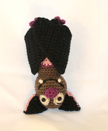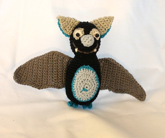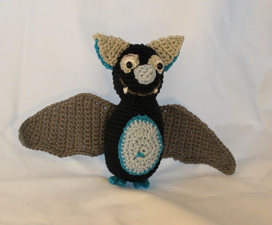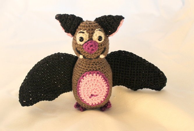 Die Fledermaus wird ca 14 * 20 cm groß, bei Verwendung von 2,5- 3,5er Wolle.
