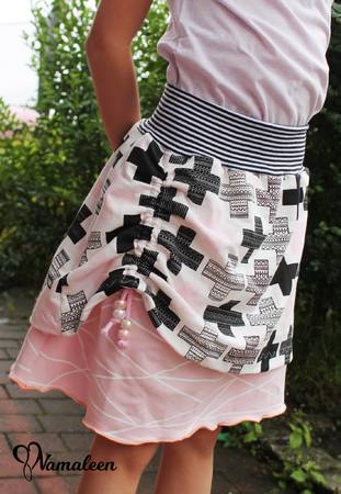 Du kannst diesen süßen Rock aus vielen verschiedenen Materialien nähen, auch nicht dehnbare Stoffe sind für den Schnitt geeignet.