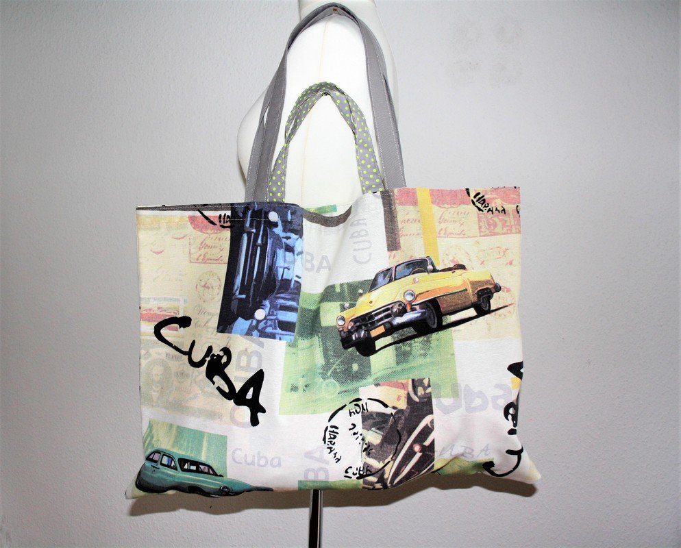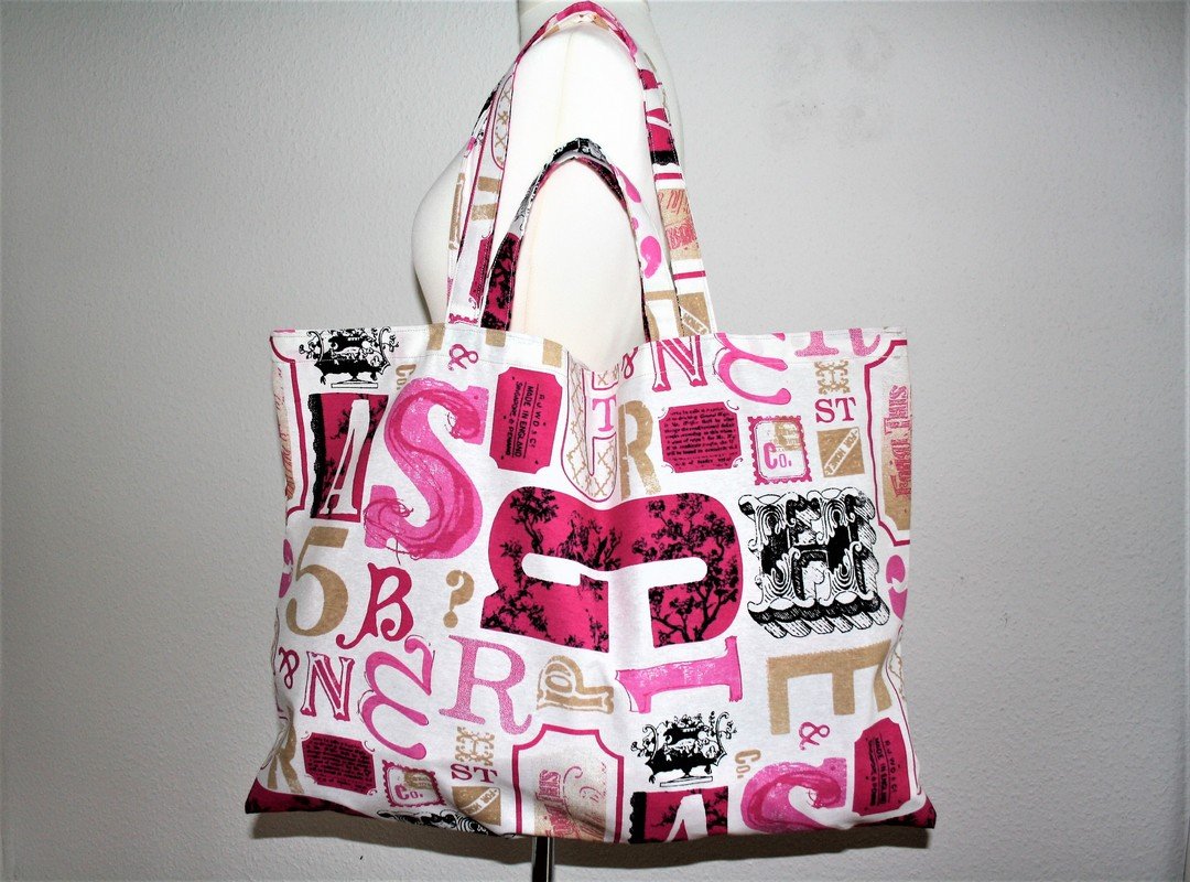 Dies ist eine Nähanleitung für eine XXL-Einkaufstasche mit großen und kleinen Trägern.