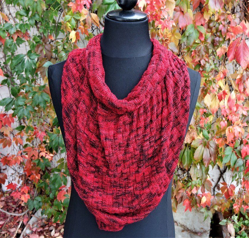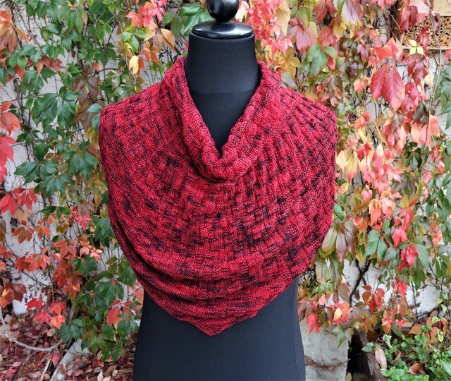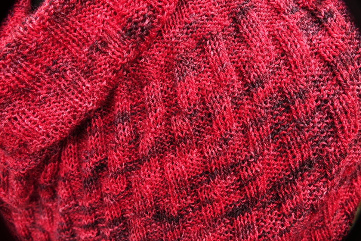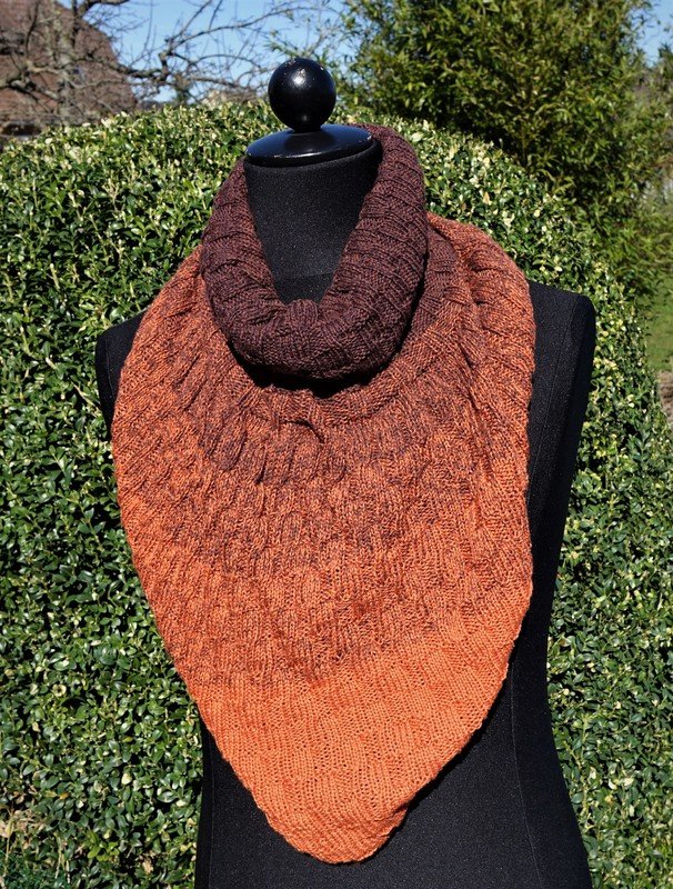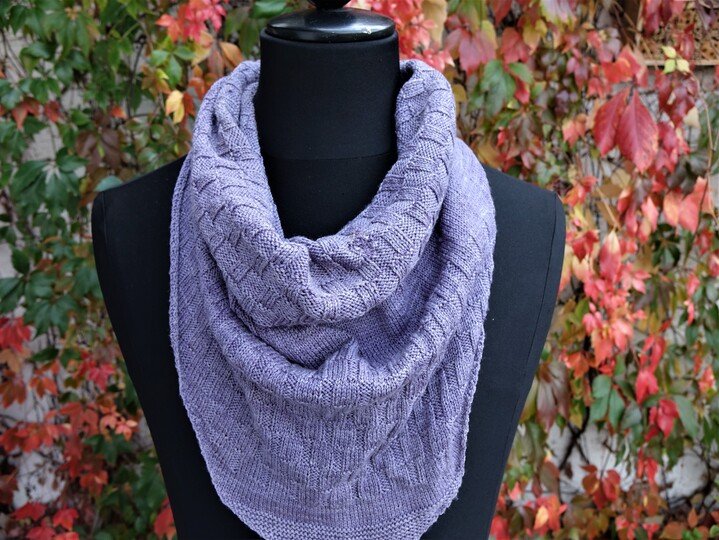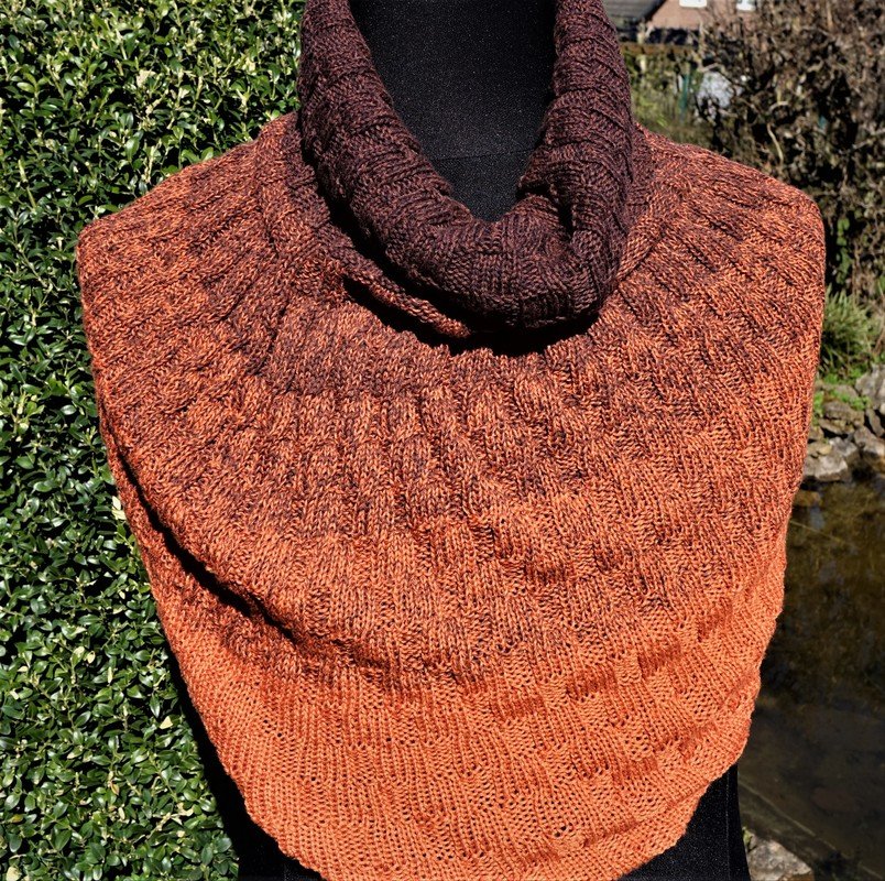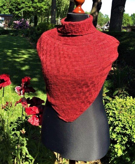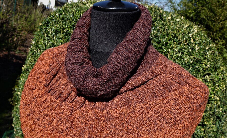 Der Triloop besteht aus einem einfachen Muster aus rechten und linken Maschen, das auch auf der Rückseite gut aussieht, daher kommt der Rollkragen gut zur Wirkung.