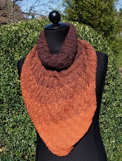Ich habe ihn sowohl mit Lanartus Rainbow, Farbverlauf 150g mit 600m, als auch mit Merino Baby lace mit 100g und 600m gestrickt.