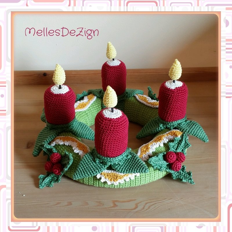 Die pdf Anleitung ist in Deutsch und beschreibt auf 12 detaillierten und gut bebilderten Seiten die Erstellung des Kranzes, den Kerzen, Stechpalmenblättern und dem Dekoband.