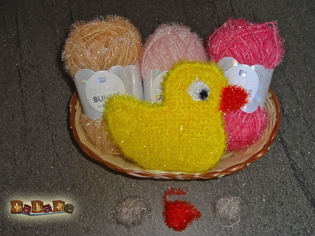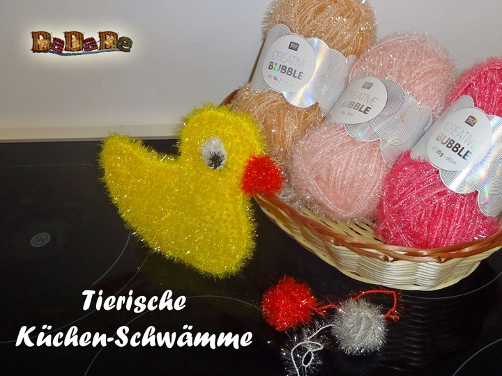 Der Schwamm wird mit dem witzigen Garn von Rico Design gehäkelt.