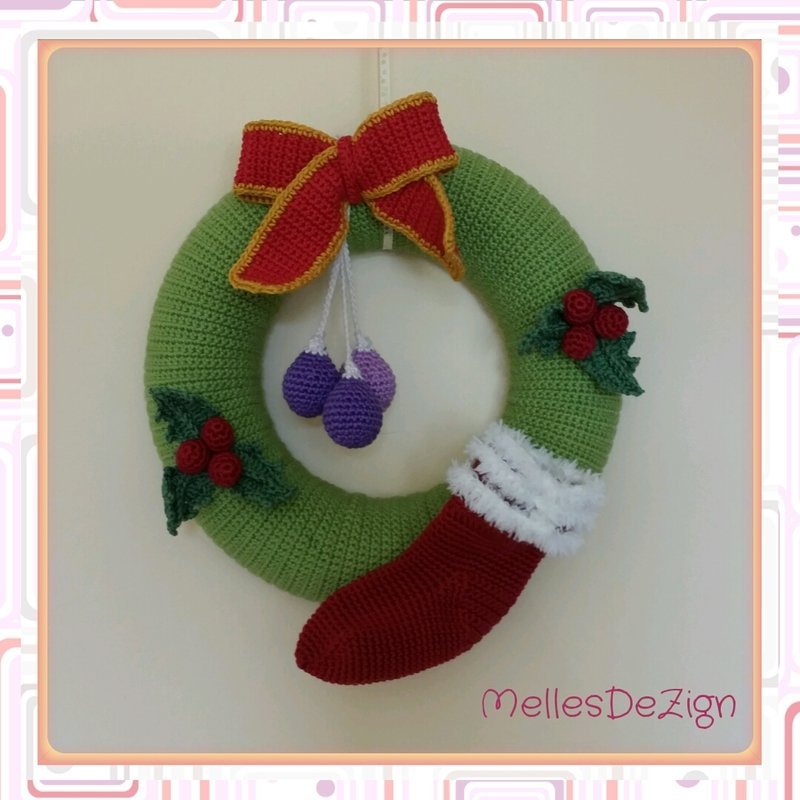 Die pdf Anleitung ist in Deutsch und beschreibt auf 14 detaillierten und gut bebilderten Seiten die Erstellung des Türkranzes, der Schleife, den Stechpalmenblättern und der Socke.
