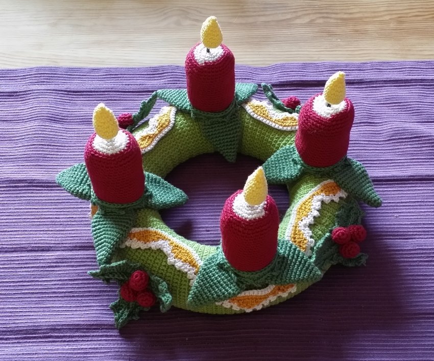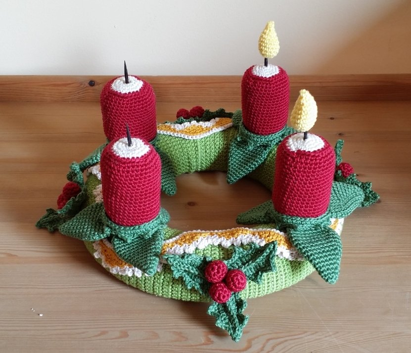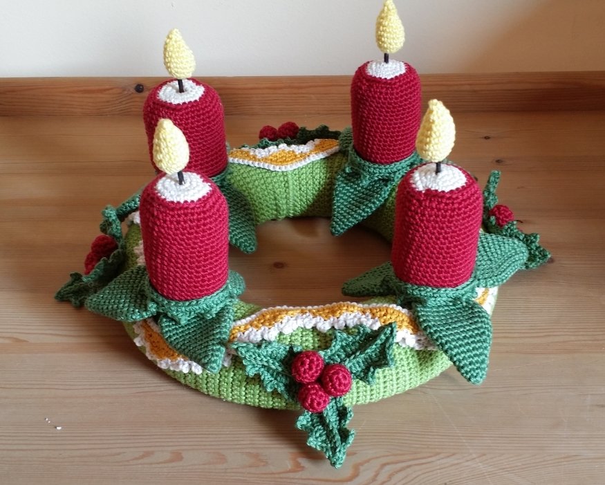 Das Set beinhaltet die pdf Anleitungen für den Weihnachts Adventskranz und den Weihnachts Türkranz. Beides hat einen Durchmesser von 25cm.