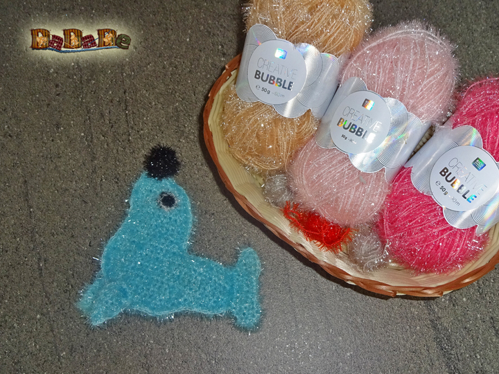 Der Schwamm wird mit dem witzigen Garn von Rico Design gehäkelt.