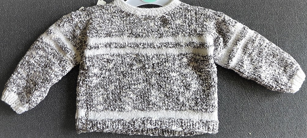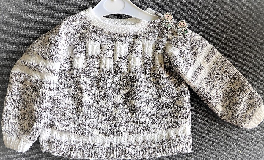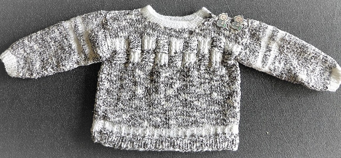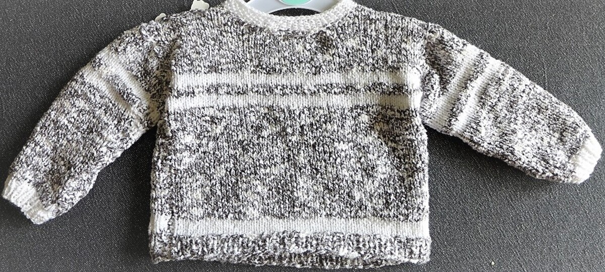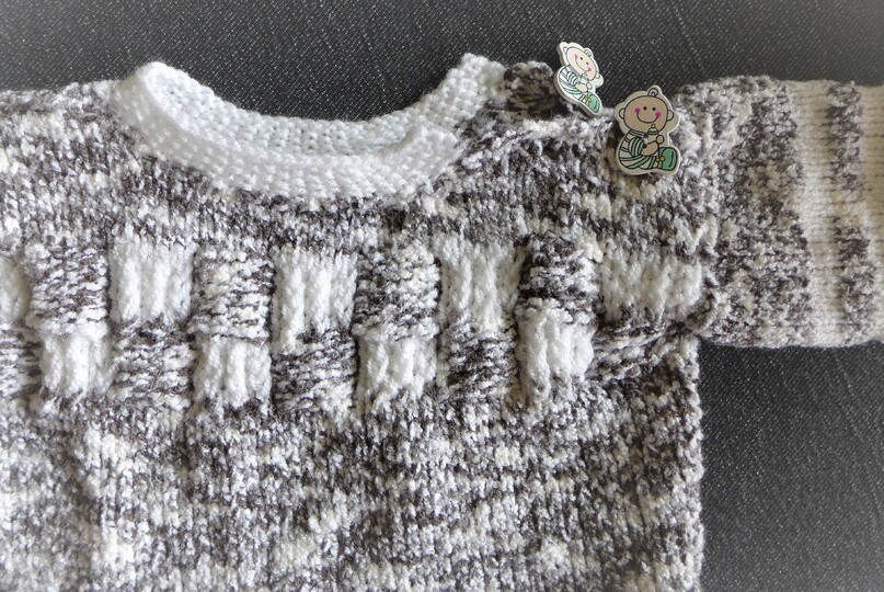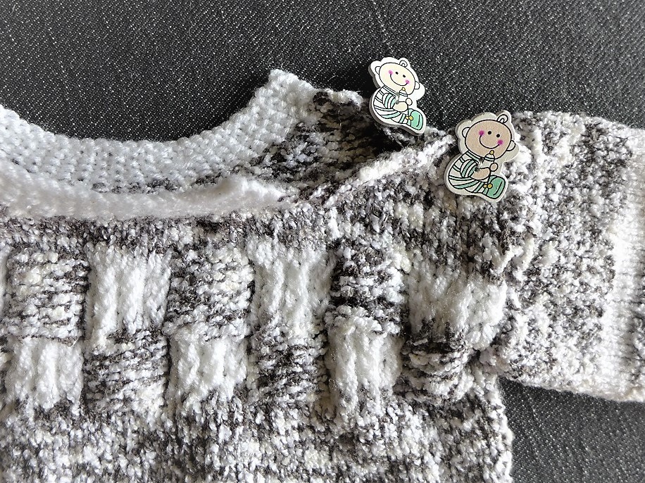 Der Pulli hat zwei Knöpfe an der Schulter,