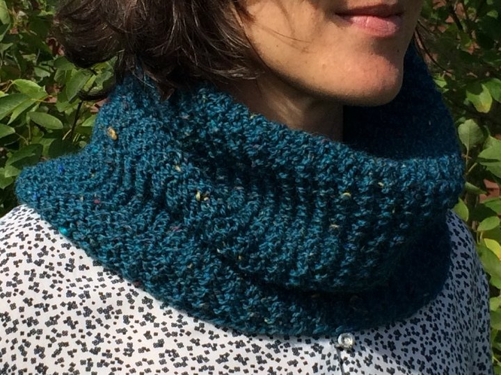 Schöne kuschelige Accessoires peppen schlichte Winterjacken ungemein auf. So wie dieser Loop im Strukturmuster, der aus einem weichen Tweedgarn in türkis gestrickt ist.